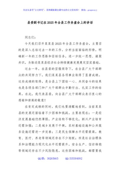 / 县委副书记在2025年全县工作务虚会上的讲话