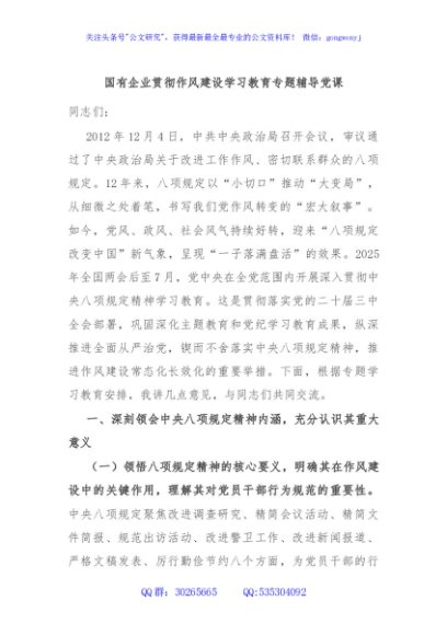 / 国有企业贯彻作风建设学习教育专题辅导党课