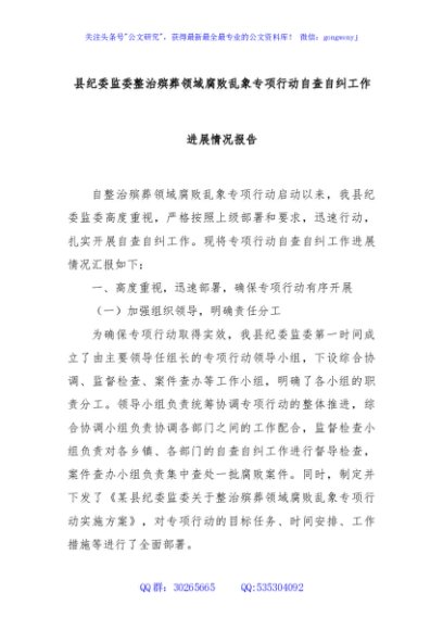 / 县纪委监委整治殡葬领域腐败乱象专项行动自查自纠工作进展情况报告