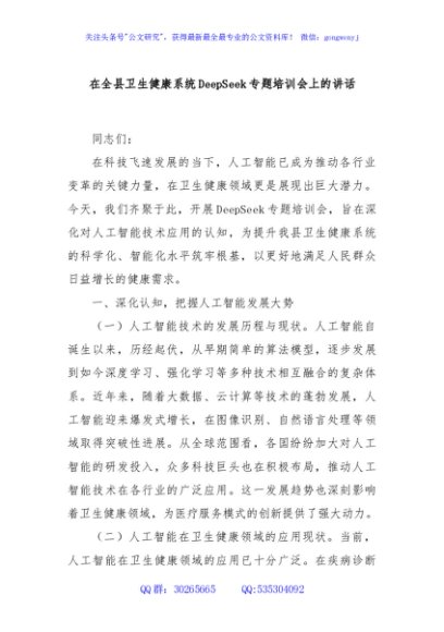 / 在全县卫生健康系统DeepSeek专题培训会上的讲话