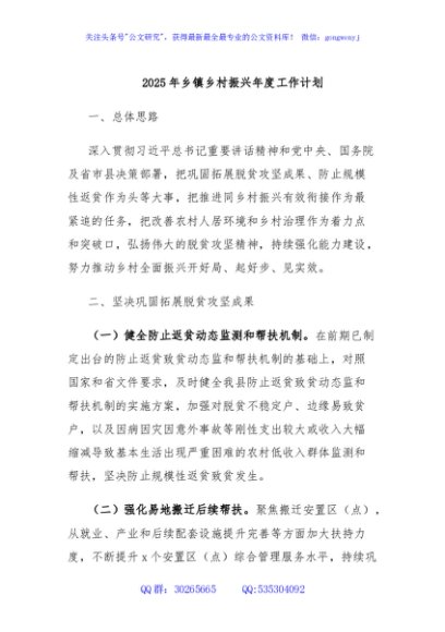 / 2025年乡镇乡村振兴年度工作计划