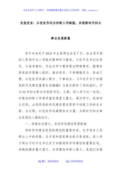 / 交流发言:以优良作风为妇联工作赋能,共筑新时代妇女事业发展新篇