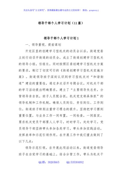 / (11篇)领导干部个人学习计划