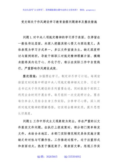 / 党支部关于作风建设学习教育查摆问题清单及整改措施