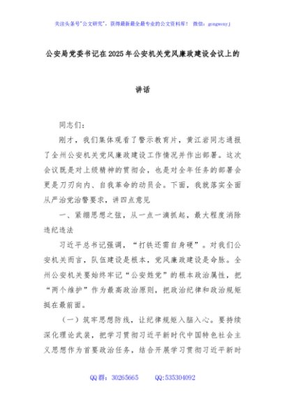 / 公安局党委书记在2025年公安机关党风廉政建设会议上的讲话