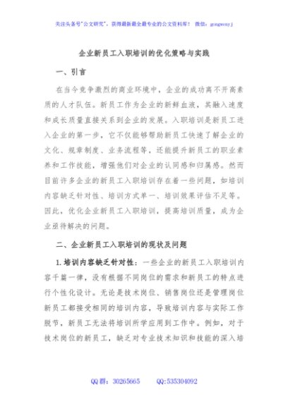 / 企业新员工入职培训的优化策略与实践