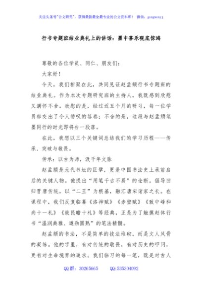 / 行书专题班结业典礼上的讲话:墨中喜乐砚底惊鸿