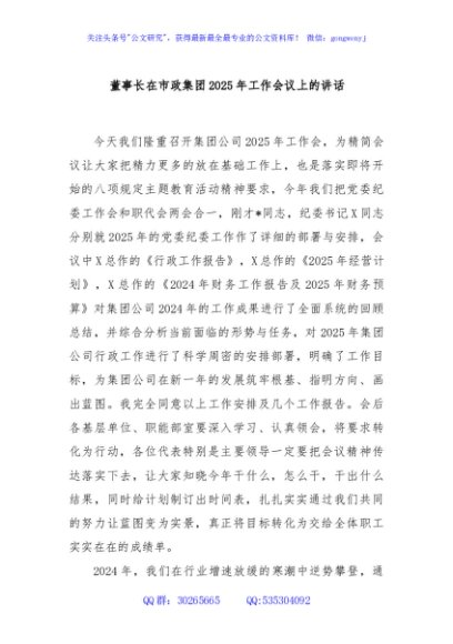 / 董事长在市政集团2025年工作会议上的讲话