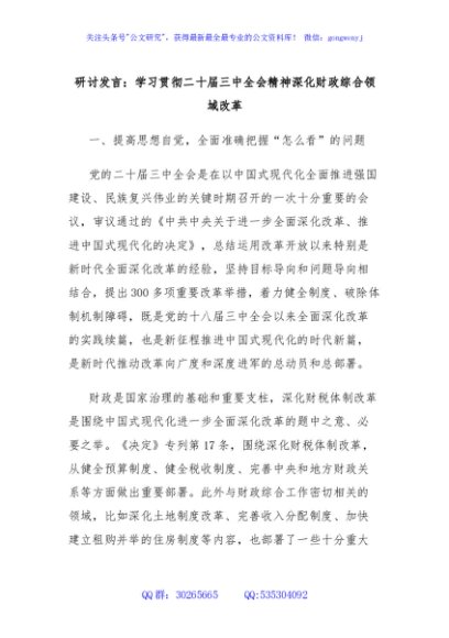 / 研讨发言:学习贯彻二十届三中全会精神深化财政综合领域改革