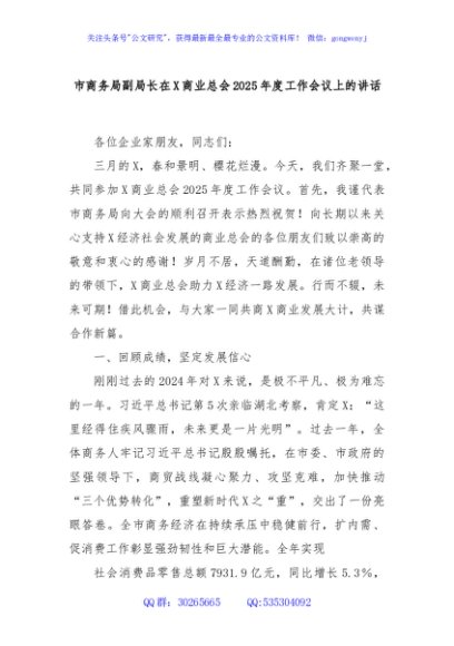 / 市商务局副局长在X商业总会2025年度工作会议上的讲话
