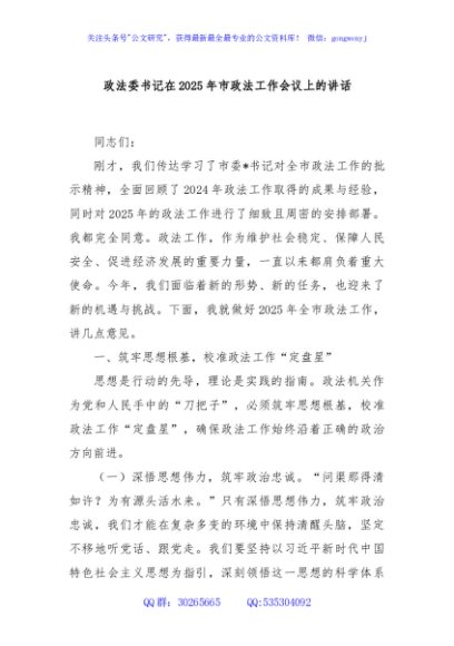 / 政法委书记在2025年市政法工作会议上的讲话