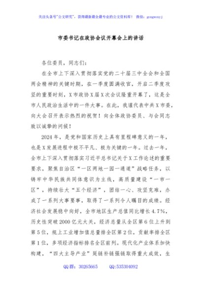 / 市委书记在政协会议开幕会上的讲话