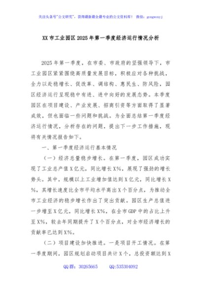 / XX市工业园区2025年第一季度经济运行情况分析