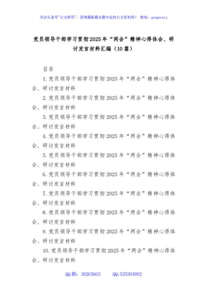/ (10篇)党员领导干部学习贯彻2025年“两会”精神心得体会、研讨发言材料汇编