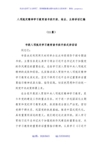 (11篇)八项规定精神学习教育读书班开班、结业、主持讲话汇编