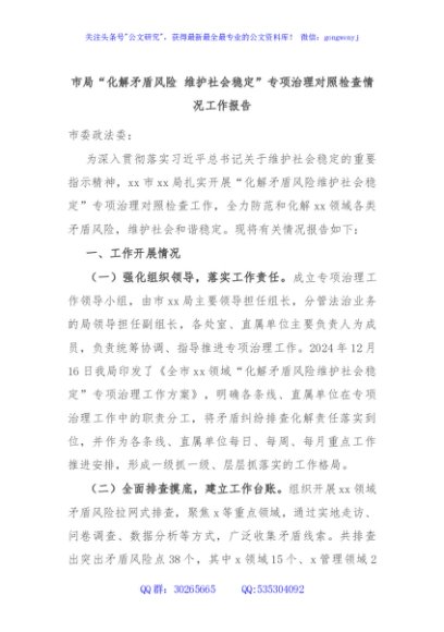 / 市局“化解矛盾风险 维护社会稳定”专项治理对照检查情况工作报告
