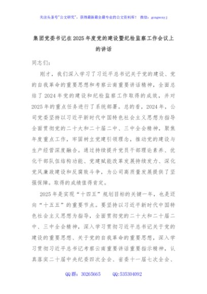 / 集团党委书记在2025年度党的建设暨纪检监察工作会议上的讲话