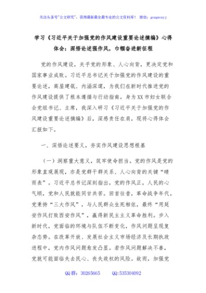 / 学习《习近平关于加强党的作风建设重要论述摘编》心得体会:深悟论述强作风,巾帼奋进新征程