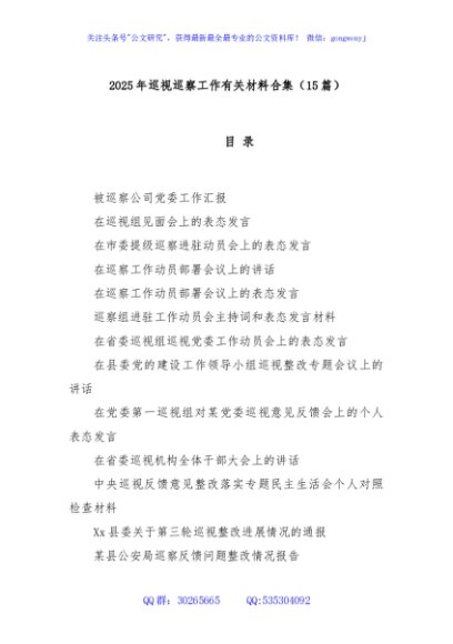 / (15篇)2025年巡视巡察工作有关材料合集