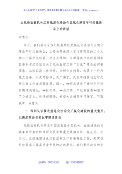/ 在纪检监察机关工作规范化法治化正规化建设年行动推进会上的讲话