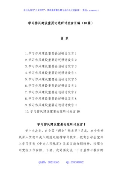 / (10篇)学习作风建设重要论述研讨发言汇编