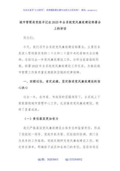 / 城市管理局党组书记在2025年全系统党风廉政建设部署会上的讲话