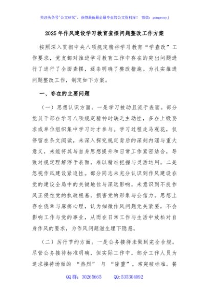 / 2025年作风建设学习教育查摆问题整改工作方案