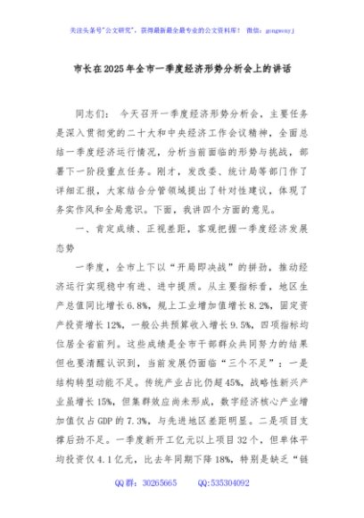 / 市长在2025年全市一季度经济形势分析会上的讲话