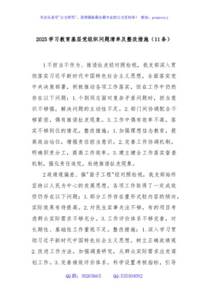 / 2025学习教育基层党组织问题清单及整改措施(11条)