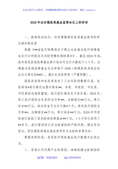 / 2025年在加强医保基金监管会议上的讲话