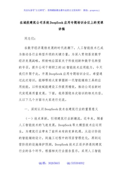 / 在城投建筑公司系统DeepSeek应用专题培训会议上的党课讲稿