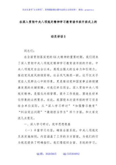 / 在深入贯彻中央八项规定精神学习教育读书班开班式上的动员讲话5