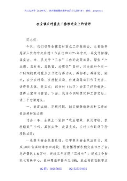 / 在全镇农村重点工作推进会上的讲话