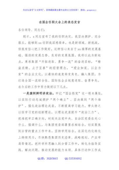 / 在国企任职大会上的表态发言