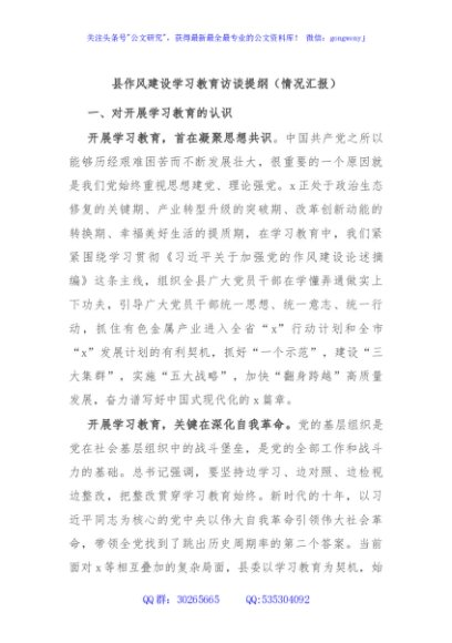 / 县作风建设学习教育访谈提纲(情况汇报)