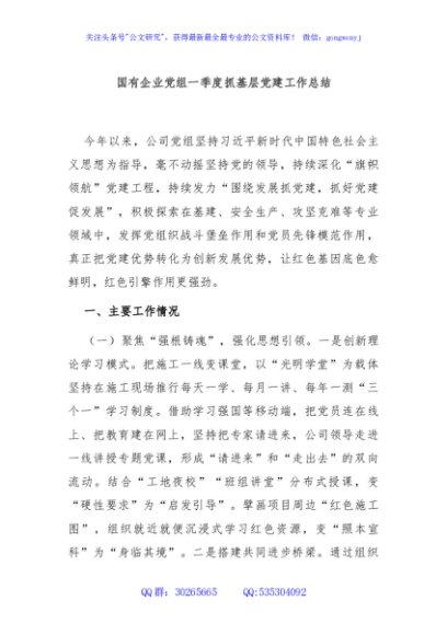 / 国有企业党组一季度抓基层党建工作总结