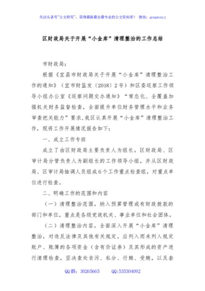 / 区财政局关于开展“小金库”清理整治的工作总结