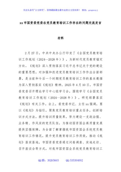 / xx市国资委党委在党员教育培训工作存在的问题交流发言材料
