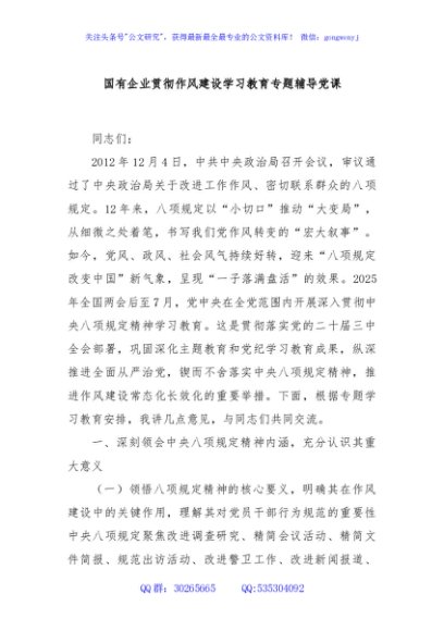 / 国有企业贯彻作风建设学习教育专题辅导党课