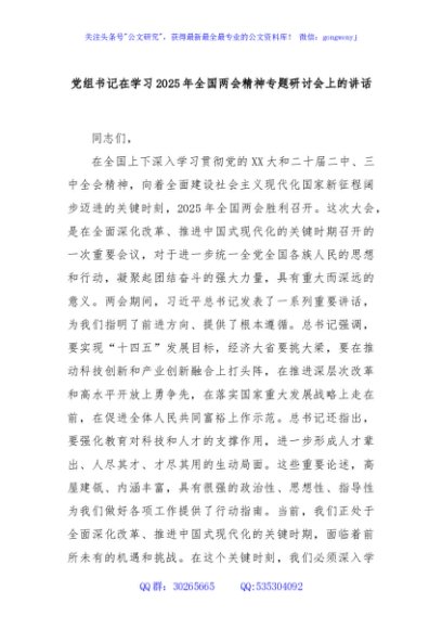 / 党组书记在学习2025年全国两会精神专题研讨会上的讲话