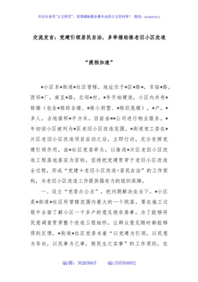 / 交流发言:党建引领居民自治,多举措助推老旧小区改造“提档加速”