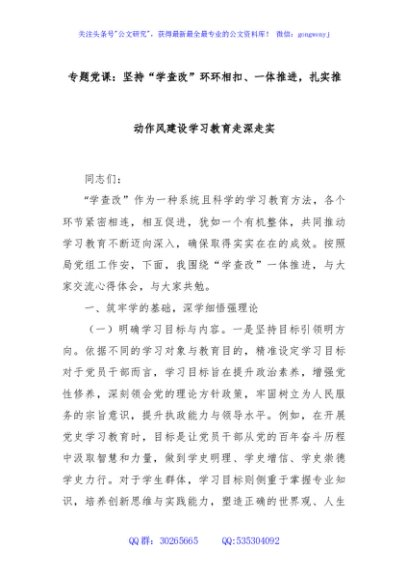 / 专题党课:坚持“学查改”环环相扣、一体推进,扎实推动作风建设学习教育走深走实