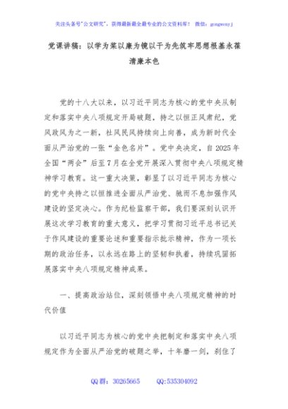 / 党课讲稿:以学为桨以廉为镜以干为先筑牢思想根基永葆清廉本色