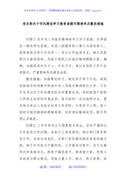 / 党支部关于作风建设学习教育查摆问题清单及整改措施