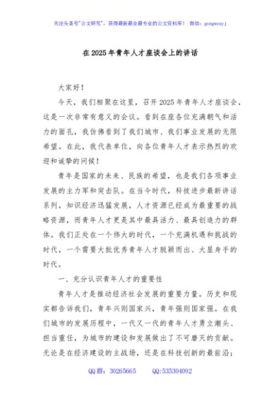 / 在2025年青年人才座谈会上的讲话