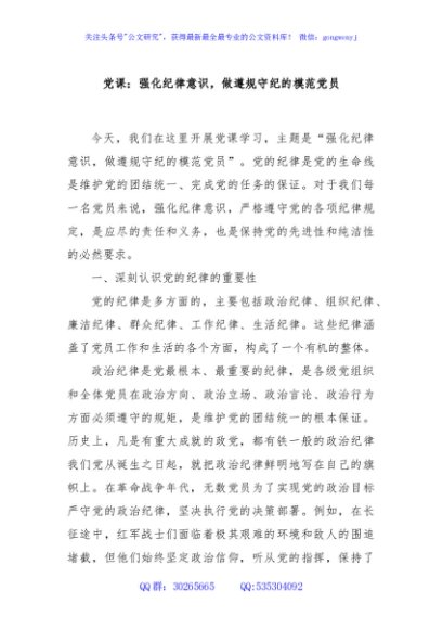 / 党课:强化纪律意识,做遵规守纪的模范党员