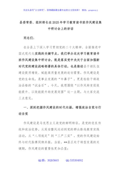 / 县委常委、组织部长在2025年学习教育读书班作风建设集中研讨会上的讲话