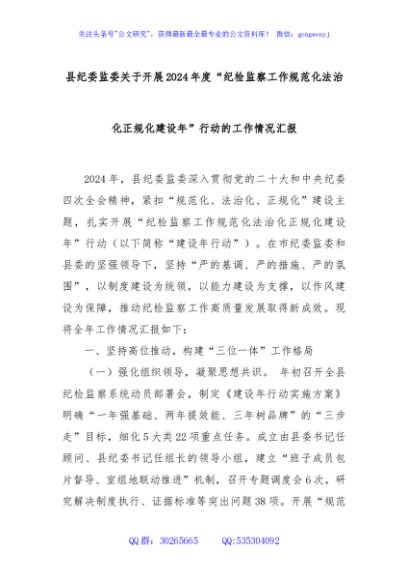 / 县纪委监委关于开展2024年度“纪检监察工作规范化法治化正规化建设年”行动的工作情况汇报