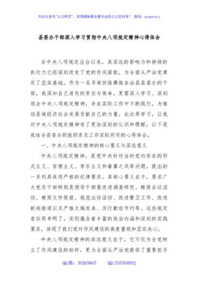 县委办干部深入学习贯彻中央八项规定精神心得体会