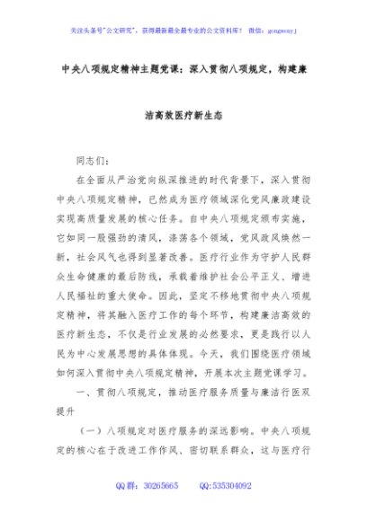 中央八项规定精神主题党课:深入贯彻八项规定,构建廉洁高效医疗新生态